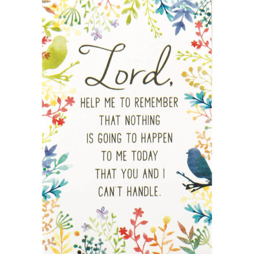Itty Bitty Blessings Cards. Colorful card has a floral border with: Lord, help me to remember that nothing is going to happen to me today that you and I cannot handle. Back of each card has to and from spaces for personalization.